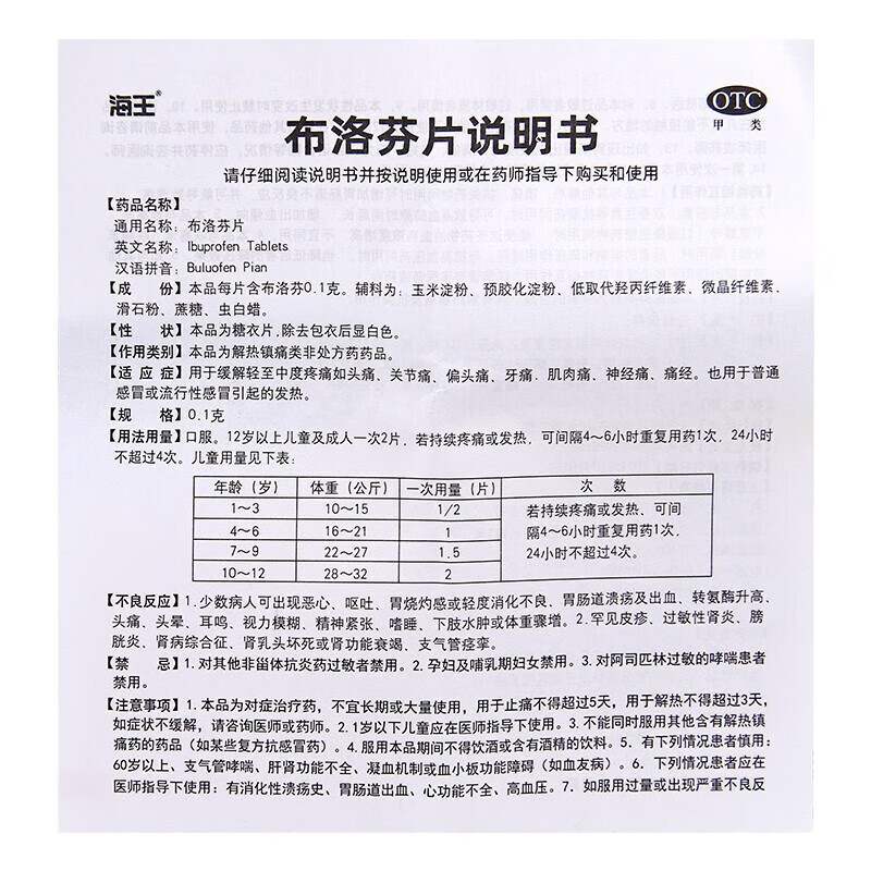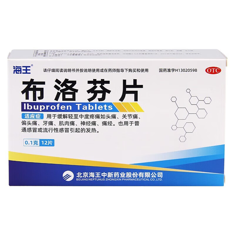 布洛芬片12片退燒藥頭痛發熱感冒流行感冒關節疼偏頭疼牙疼肌肉疼神經痛感冒發燒肌肉酸痛非京自東營大藥房 1盒裝