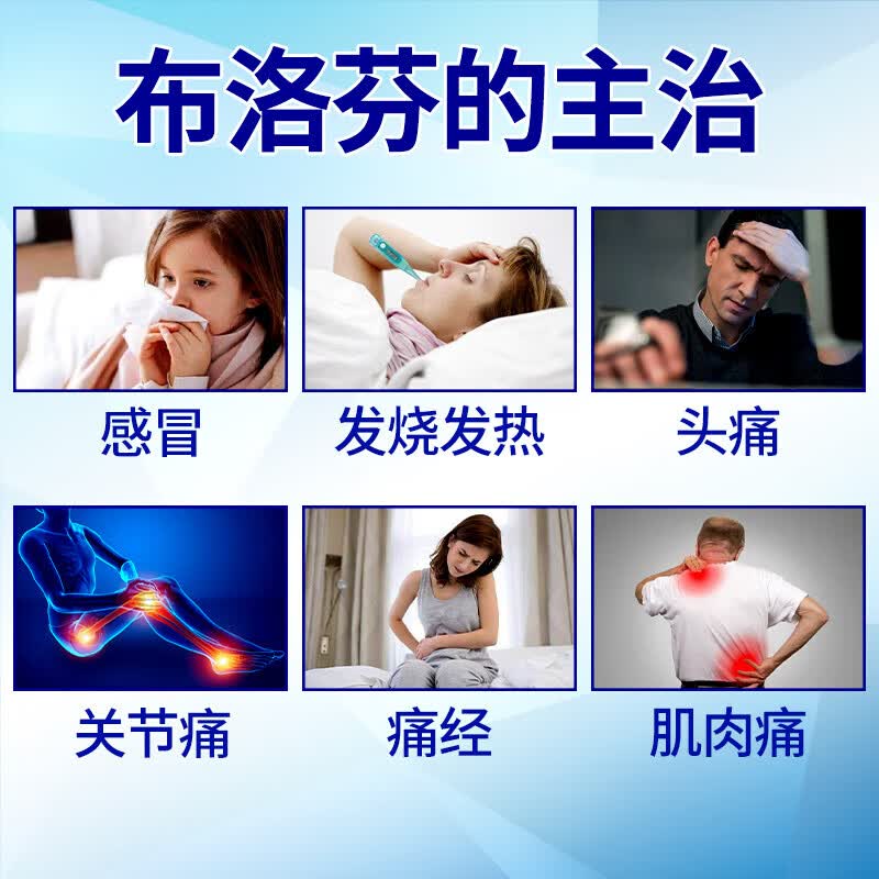 - 用于緩解輕至中度疼如頭痛、關節痛、偏頭痛,牙痛、肌肉痛、神經痛、痛經。也用于普通感冒或流行性感冒引起的發熱。